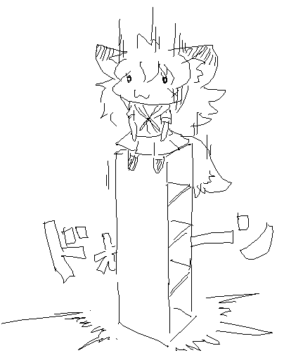 >> 10/29 09:00 さきつねさん、イラストに対してみんなが持っている葛藤、それは 「上手に描けないと面白くない、だけど描かないと上手になれない」こと。 つまり、絵を描くにあたっては、上手に描くこと以外の目的をもって描く必要がある。 いや、もっと具体的に言えば、上手に描けなくてもいい絵を描くことか。 例えば、好きなキャラクターの絵を描くことだが、これも好きなキャラクターが 上手に描けないことからネガティブな気持ちになりがちだ。 上手に描けなくてもいい目的、その一例は完全に作業化してしまうこと。 ただ丸を描くとか、まっすぐな線をひくとか、ひたすら模写をくり返すとか。 だがこれでは本末転倒で、楽しく絵を描きたいのに楽しくないことを自分に強要してしまうことになる。 ではどうすれば良いのか。 最良の方法は、上手に描けないというネガティブな思考を上書きできるくらい強い「絵を描くのが楽しい」という気持ちを持つことだ。 残念だがこの気持ちを持てないなら絵を描くのは諦めるべきだろうな。 さきさんはきっと絵を楽しんでいるんだね。ワカるよ。 わたしはわたしの見たい絵をかくだけだからなぁ >> 10/29 14:48 \\′|||::-/ /\\|||ニ/;、 |r^`YヘY⌒ヘ:| || |T| || |丶_ノ|ト、_ノ/ 丶vV|||:::/ ト、_L|」:ノ、__ _r-、_ノ_|||::/:::丶 // ///:::||::::: // ̄Y//-:ニヘ|丶:::: /ト、_|||::::|、二二 \ー、/ ( 0‖0) / つ_つ 人 Y し^(_) 私所長だけど部下が マジックテープ式だった 私聞いてない。。 \。 / ジョーカー (゚ω| |゚;) エクストリーム! C | |と) `/ _| |;;l丶l丶 (ノ `( ) バリバリ と | しーJ やめて ぼくこどもだけど かめんライダーが マジックテープしきだった しにたい お前の罪を数えろー ∧_∧ (O||O ) バリバリC□ l丶l丶 / ||( ) (ノ ̄と | しーJ やめて! マジックテープ式 マジックテープはべんりなもの >> 10/28 13:20 さきつねさん、キツネのアインコンがほしいです。お願いしてもいいですか? 使用方法は、大学の自己紹介ページに貼りたいからです。 それはどんなきつねなのだろう >> 10/28 13:27 てかこの絵、もう飲み込んでるような気するんだが・・・ まれによくある >> 10/28 13:27 卒論ガンバレ ガンガル >> 10/28 15:59 >>体内とかは演出が難しいのよね ならば体内描写無しで、入りこまれたらビクンビクン痙攣させて、力尽きた後に成長したモノが出てくれば良いのでは? たしかにそれならいけそうね >> 10/28 18:04 長らく死んでました、続きを そして二人に別れを告げてその場所を後にした私でしたが空港にてとても素敵な出会いに遭遇しました、 そこにはあの夜リディアと話した容姿に良く似た中性的な人物が座っていました、どうやらまたどこかへ行こうと言う所らしい、 どうにも気になり私は柄にもなくその人物の隣に座り声をかけました「何処へいかれるのですかな?」すると その人物はこちらを振り向くこともなく私に答えました「今決めてる所、出発はきっと明日か明後日、どうしてだろうねぇ? いつもはどんな人でも無視できるのに・・・変な気分にさせられる」そういうとこちらを向いて微笑んでくれました、 帽子を被っていたので良くは見えなかったのですがこちらを向いてもらうと女性であることがありありとわかりました、 そして私は単刀直入に聞いてみました「君はここの土地出身?猫とか飼ったことある?」すると彼女はクスクスと微笑むと 「そうだよ、私はここ出身の年齢26歳、猫も飼ったような懐かれた様な感じなトラベルマシン作成構想を立てて 各国を旅するフリーの研究員って感じかな、ついでに名前はルチアーノっていうんだ、とことん解らない人だねぇ、 どうしてだろう、貴方に「君」と呼ばれたのが他人行儀で嫌だったのかな、名前を教えるなんて」どうにも猫と話をしているような気になる女性でした、 私は彼女に微笑み返すとリディアの事を考えて言いました「もしその懐いてきた猫が私が旅行中に出会った猫だったとすると ずっと君を待っていると思うよ?間違っていたら私とても恥ずかしい訳だが」と言うと少し驚いた顔をして言うのでした 「銀髪で長いスカートの子?」私は確信を持って彼女に言いました「名前くらいは付けてあげないとだめだよ? 自分に自らの名前をつけられる子ばかりじゃないからね自然界は、その子はリディアと「名付けた」よ、君の街の一番高い丘の上当たりに居ると思う、 そうそう・・・自分用の椅子を用意して行くと良い」私がそう言い終ると彼女は俯いて言いました「まだ・・待っててくれたんだ、 さよならは確かに言わなかったけど、悪いことしちゃったな、そうだ、あの子何か言ってましたか?私の事」私は一枚の紙を彼女に渡して一言だけ言いました 「君のことしか言ってなかったよ」すると彼女は立ち上がって私に一言「有難う」と言うと駆け出していきました、 私はそれを見送った後やっと帰りの飛行機に乗りました。 続く そんなシリアスな風景のさなかきつねは相変わらず肉まんをむさぼるのだ・・ >> 10/27 13:32 シェエアイサイwwww
