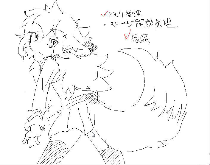 >> 10/11 15:34 テトリスってシステムは単純なのに何でまだ新作出続けてるんだろう? 単純だからだよ >> 10/11 20:18 武器は増やしていく方向でいくのかな? 良ければ増やす予定の武器をおせーて ショットガンとスナイパーライフルは入る マシンガンもあさるとライフル的なものがはいる >> 10/11 20:51 小説の人形さえあればサキツネさんに○○○やらができる・・・www 新作ゲームおもろいので、 次回更新に期待^^ そう思っていた時期がわたしにも ゲームはまぁ気長にまってー >> 10/11 23:19 上や下から体内に入って中で成長する蟲とか不定形生物はどうでしょう? 他には吸着型体力吸収系の敵(執拗に追いかけてきて、触れている間ダメージ(動ける)の敵(イメージは半透明なクラゲや半透明な幽霊や小蟲)) あと、ベルトコンベアなどに流されたままだと即死したり(行き先がスライサーや破砕機、高圧電流など)する仕掛けはいかがでしょうか?(BBのクラゲみたいに触れたら気絶系の敵がいればコンボもバッチリ!) 長いですね。すみません 体内とかは演出が難しいのよね >> 10/10 00:59 テトリスで四列消し待ちの所に棒ブロックが来た時は嬉しい 逆に四角ブロックが来たときはへこむ 棒しかこない恐怖 >> 10/10 01:38 頭わしゃわしゃされている奈々さん…かわいすぎる!! わしゃわ ごきぃ >> 10/10 08:23 Hello :D (*‘ω‘ *) >> 10/10 09:45 奈々ゲーで気づいたんですけど丸のみモンスターがいますよね?それに奈々が飲まれちょっとだけ体内が見えるときにRボタンを押すと次に出た奈々でさっきやられた丸呑みモンスターのとこに行くと体内が表示されたままです。 そのまま飲まれに行くと上半身も顔もちゃんと書かれていた事に気づきました。 なんと 次のときになおす?それとものこす、どうしたものか >> 10/10 13:46 仕様でしたか くわがたぶしありがとうございます というか既出 さぼってた >> 10/10 17:35 きつねさんゲームで右クリックすると出てくる丸い玉ってきつねさんにしか当たらないんですね。 最近、ずっと右クリック連打できつねさんをいじめております。 あれ?気のせいかきつねさんの見る目が・・・ ガッ >> 10/10 17:36 更新おつかれさまです。 とりあえずBlankBloodを少しやってみましたが、ゴーレムがいるエリアの地面が浮いている、地面での拘束を解くと歩けなくなる(ジャンプで解消)、といった不具合を確認しました。 なおしたよー >> 10/10 18:05 今更だけどBBで刀涼子さんの2連続切りをマスターした。 おめでとう2段とはいわずもっと連射するんだ 2010/10/10 101010! なんかキリも良いし更新だよー。 とりあえず主要なゲームをGM8データに作り変えて出力しなおしました。 VirusTotalで調べたけど大丈夫だったし、 ウィルス誤検知は直ったと思うんだけど・・もしダメだったら連絡ください。 ゲーム内容に大きな更新は無いですが、アンチウィルスソフトが原因でプレイできなかった方はお試しください。 >> 10/09 01:39 タイトル「レジェンドオブナナ」でいいと思いません? ほとばしるネタゲー臭 >> 10/09 21:54 涼子さんと奈々さんって仲良くなさそうですけど仲悪くもないんですよね。 ドライな関係なんですか? 普通の姉妹のような距離感で、信頼だけは妙にある。 >> 10/08 01:01 奈々ゲーに「片腕を折られ、激しい戦闘と深い傷で体力も血液も失い、それでもなんとか 銃をかまえて敵に打ち込もうとするが、力尽きて膝からガクリと倒れてしまう」 というシチュエーションの死亡シーンを造ってほしいと願います。 そういう演出演出した死亡はやってみたいですね。 >> 10/08 06:16 さきつねさんはいつごろから描いているのか(いつごろ生まれたのか)、 BBの姉妹はBBを作成する際に生まれたのか、それともその前から存在していたのか、 だとしたらいつごろ生まれたのか、そういった話を聞きたいです。 あと身長差とかも気になります。 さきつねさんって意外と背丈があるような気がするのだけど、FoxTaleの頭身が大きいからなのかな? 涼子>さきつね>奈々? でも涼子さんも実は案外小柄だったりして・・・160aとか・・・ BB姉妹はBBを作り始めた後にできたんよ さきつねさんはいつだったかすでに忘れた 平常時は涼子>さきつね>奈々 ただきつねさんはしばしばロリる >> 10/08 10:23 BBでバグっぽいもの見つけました >> 10/08 10:33 日本刀があるマップで 隠しブロックで入ってこうなってますよね ┏━─┐ ┃ ┌┘←宝箱 ━┛┏┘ ━━┛ ここ↑で、右を押したまましゃがむとめり込みます 三歩ぐらい歩くと落ちて床しかないとこに出て詰みます >> 10/08 10:40 今奈々さんでも起こるかな〜って試してみたら、 しゃがむというより右と下同時押しでした 一歩完全にめり込むと左下押しじゃないと出れません >> 10/08 10:43 バグでしたら奈々さんください 「既出」とか「実はそういう仕様で、ちゃんと脱出法がある」 とかでしたらくわがたぶしでいいです